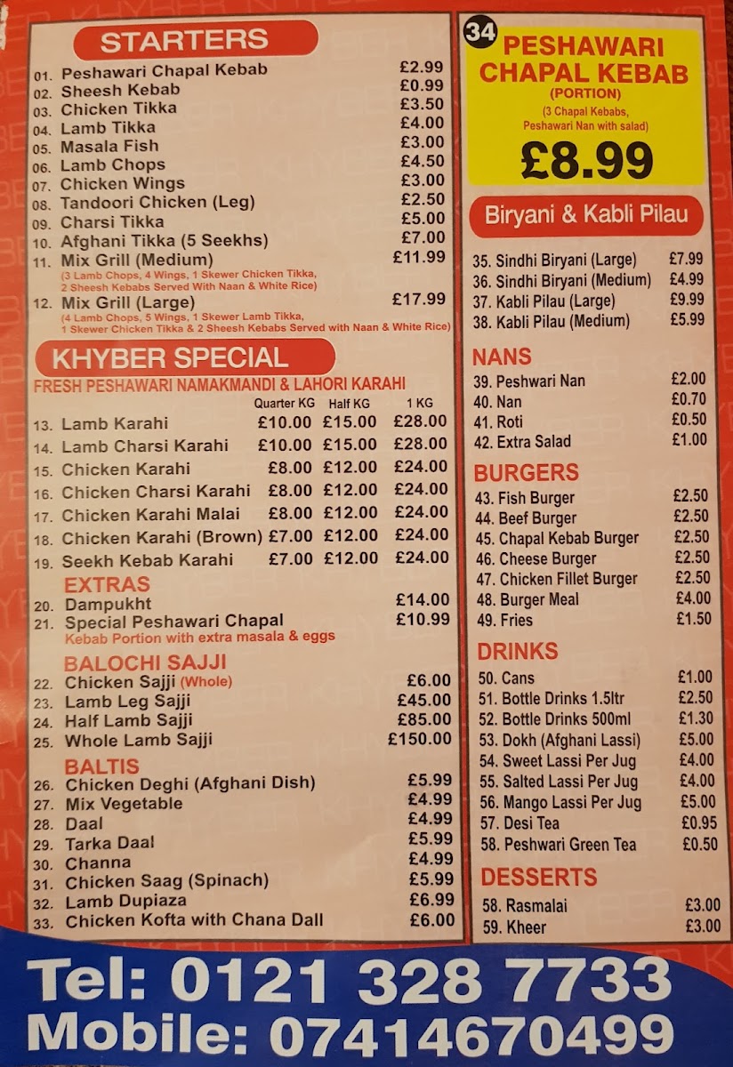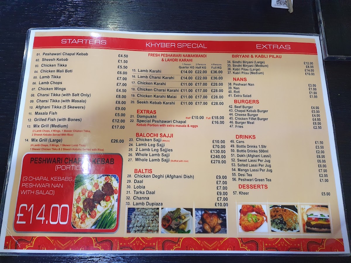 Welcome to the Taste of Khyber Restaurant, a gem nestled in Saltley, Birmingham, known for its authentic Pakistani cuisine. The menu offers a rich tapestry of flavors, featuring delectable specialties like the Sindhi Biryani and Kabli Pilau Rice, available in both medium and large portions to satisfy any appetite. For a shared dining experience, the impressive platter provides an array of tender chicken tikka, succulent lamb chops, and the fabulous Chapli Kebab, highly praised by patrons.